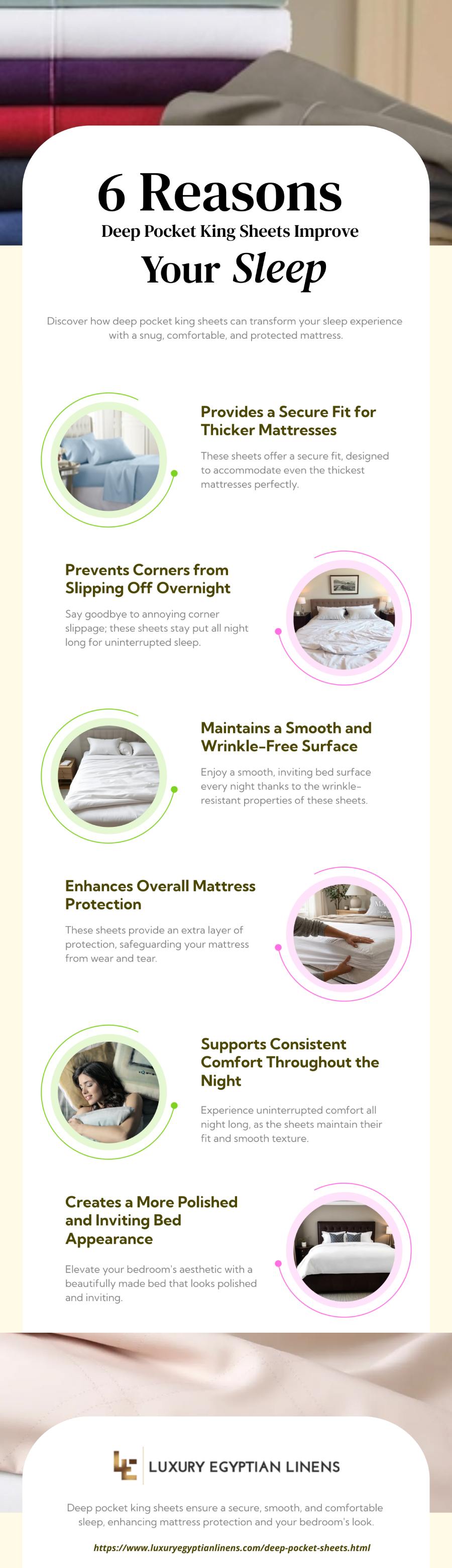 Choosing quality deep pocket king sheets can enhance comfort, improve bedding longevity, and elevate the overall sleep environment. Below is an infographic outlining six reasons these sheets can positively impact your sleep quality.
